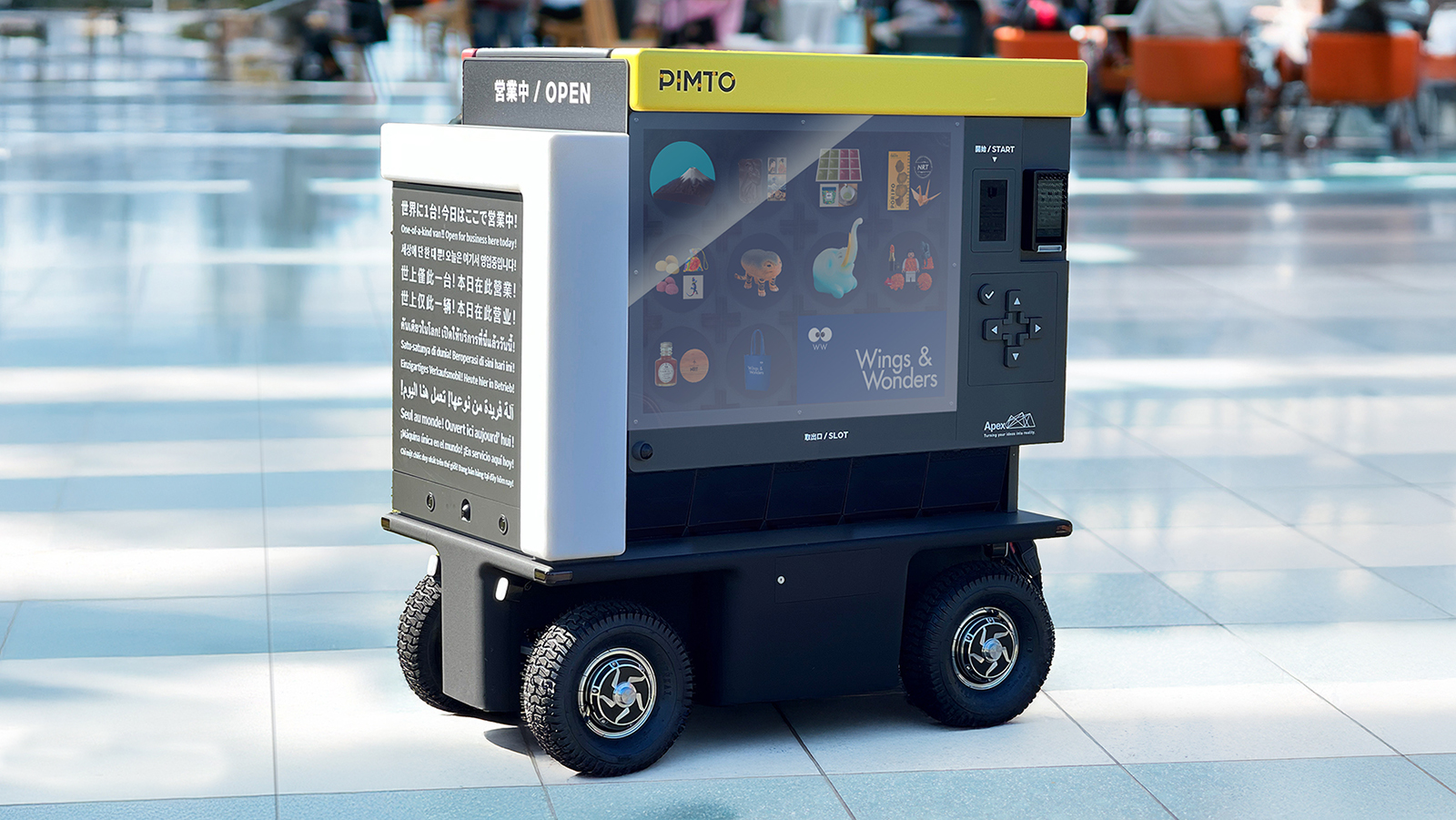 航空機の状況によって利用される出発サテライトは毎日変化し人の滞留場所も変わります。その人の滞留に合わせて販売場所をかえることで、多くの旅客が広い空港内を移動しなくとも買物を楽しむことができます。