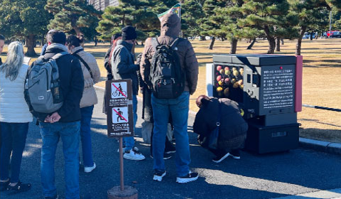 皇居では保安上から自販機や売店を常設しづらい領域があります。移動型なら保安強化日は領域外に移す条件で設置でき、来場者が広い皇居内を移動しなくとも買物を楽しむことができ、ランナーのクールスポットにもなります。